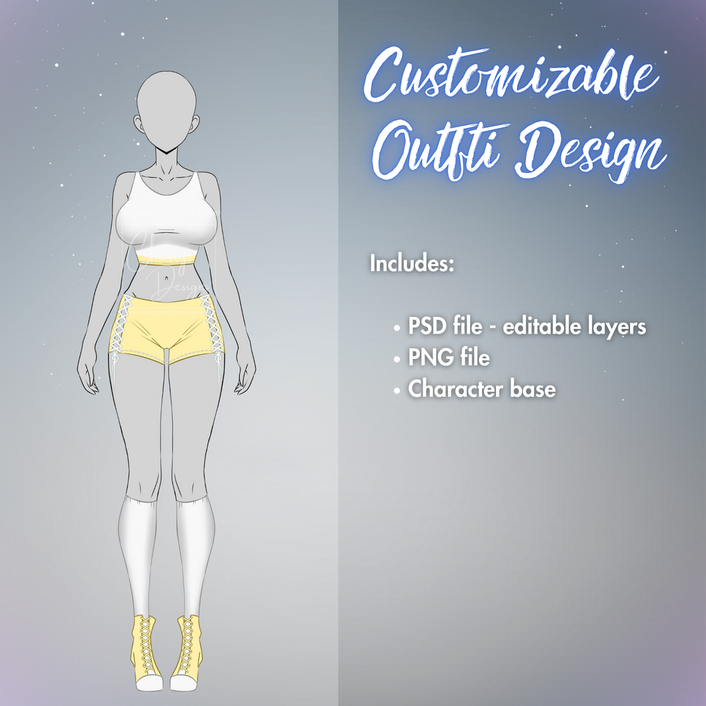 Please note: As it applies to all other customizable designs, there is nothing below the layer of the outfit, I erase all the lines underneath to have one single line art, not separated between character and outfit.