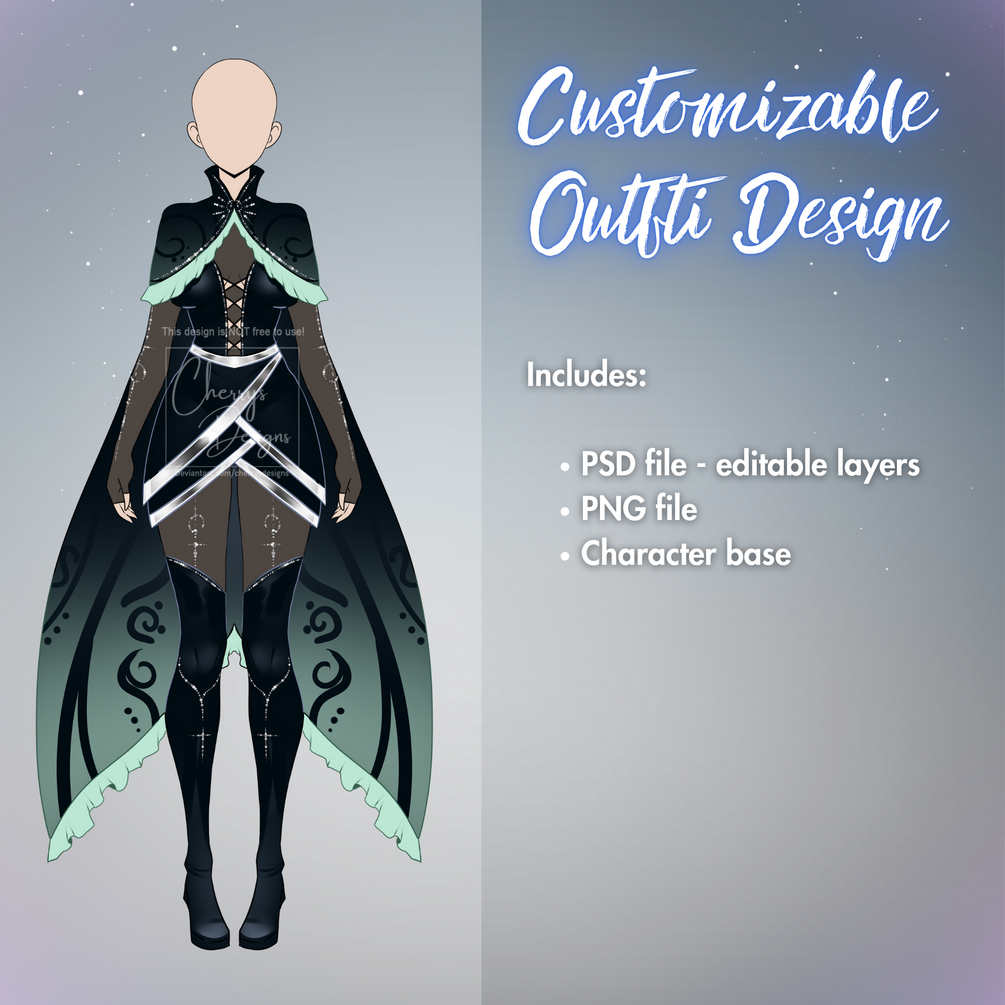 Please note: As it applies to all other customizable designs, there is nothing below the layer of the outfit, I erase all the lines underneath to have one single line art, not separated between character and outfit.