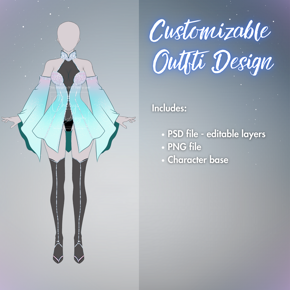 Please note: As it applies to all other customizable designs, there is nothing below the layer of the outfit, I erase all the lines underneath to have one single line art, not separated between character and outfit.