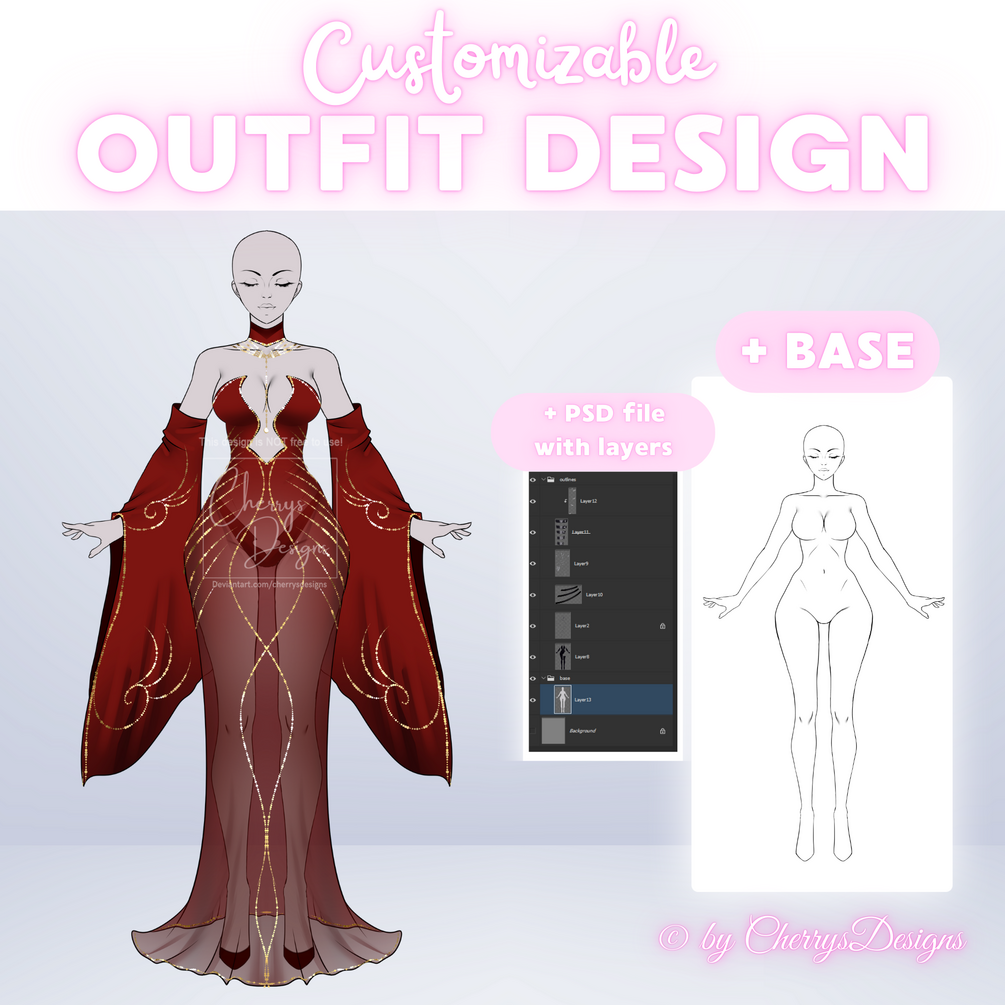 Please note: As it applies to all other customizable designs, there is nothing below the layer of the outfit, I erase all the lines underneath to have one single line art, not separated between character and outfit.